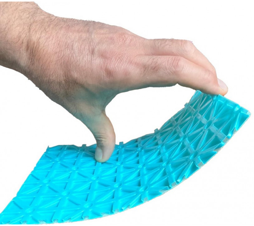 Sa structure spécifique en relief triangulaire (type queue d’aronde) permet une adhérence maximale avec les mortiers-colles (ciment, polyuréthane, époxy), tout en offrant une excellente résistance à l’arrachement.