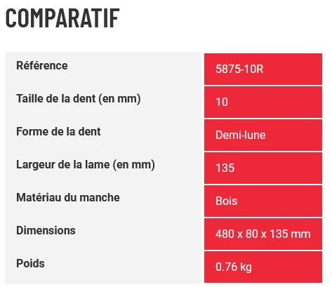 Peigne en Acier Long Demi-lune de 10mm x 20mm en Bois 48cm BELLOTA