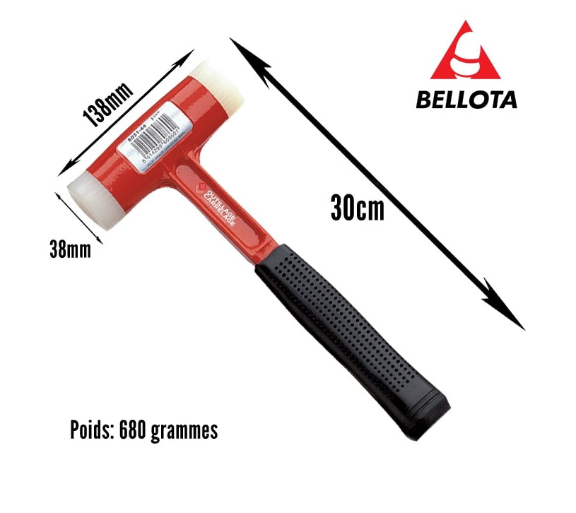 Maillet anti-rebond BELLOTA 805138 avec têtes en nylon amovibles et manche métallique ergonomique. Idéal pour frapper sans marquer, même sur tôle et acier.