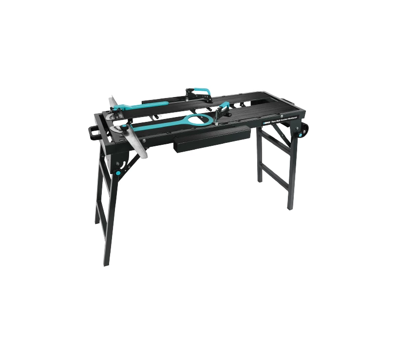 Cet établi offre une polyvalence remarquable. Sa surface de travail extensible et ses fonctionnalités intégrées pour le découpage et le perçage garantissent une précision et une efficacité accrues. De plus, sa portabilité grâce aux pieds pliables et aux roues en fait un outil incontournable pour les carreleurs en déplacement ou les petits ateliers.