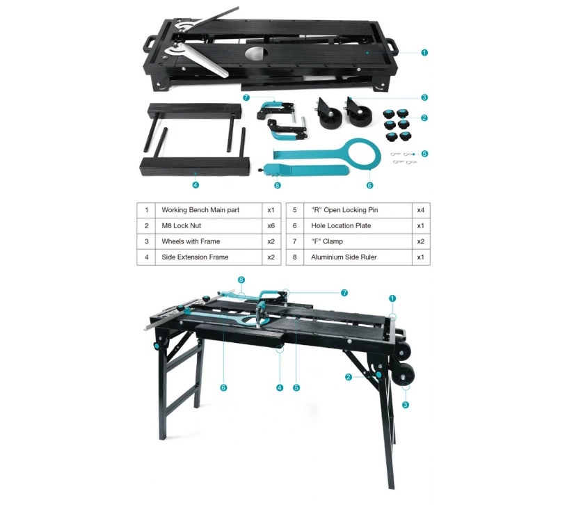 • Établi portable avec une hauteur ergonomique idéale pour réduire la fatigue pendant le travail.