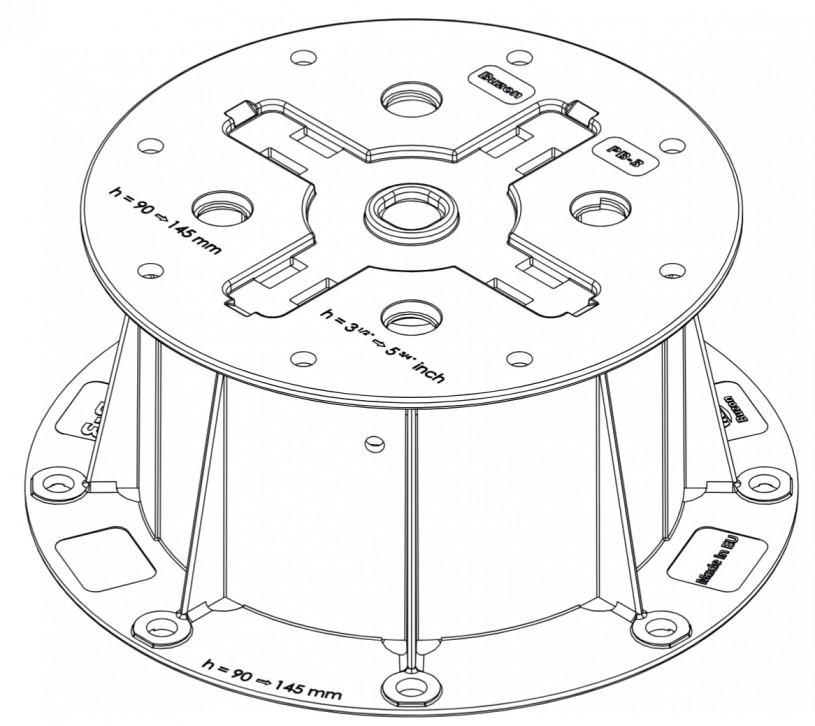 Plot réglable BUZON PB-3 (90 à 145 mm) – Support professionnel de la gamme PB, conçu pour la création de terrasses surélevées robustes, durables et parfaitement nivelées.