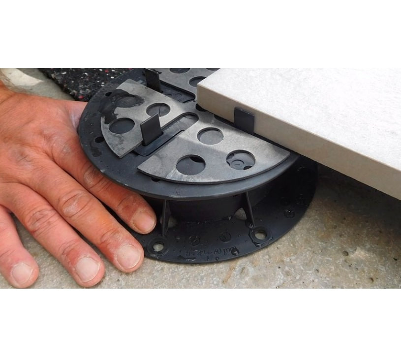 - Convient à la pose de dalles, bois, composite ou grilles métalliques.