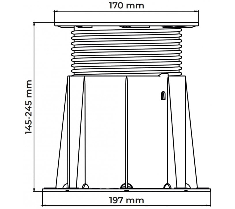Réglable de 145 à 245 mm, il assure une parfaite stabilité, une grande résistance mécanique et une compatibilité totale avec les accessoires BUZON.
