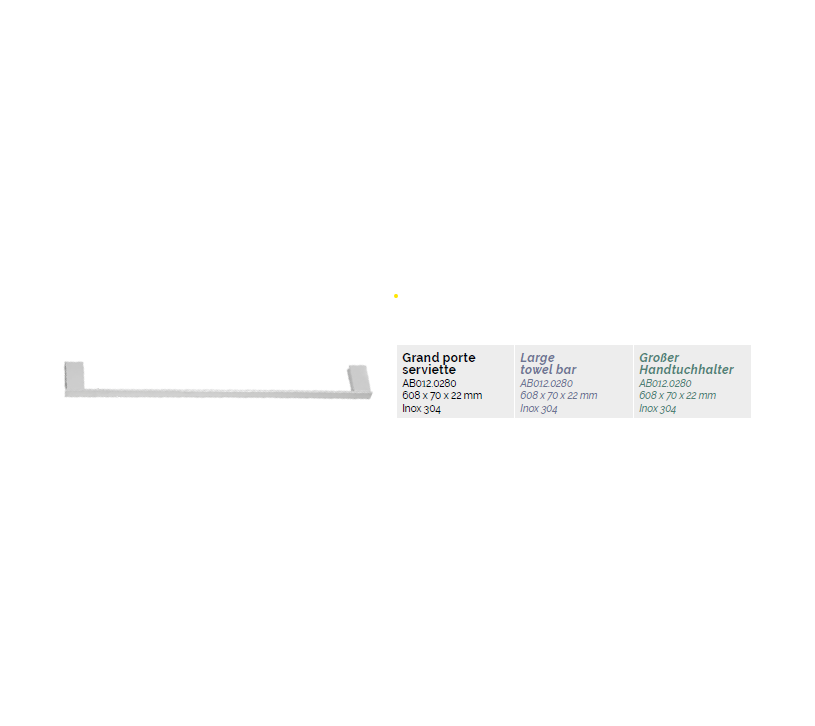 - Design épuré et moderne : Avec son style minimaliste et ses finitions en acier inoxydable, ce porte-serviettes s’intègre parfaitement dans des intérieurs contemporains.