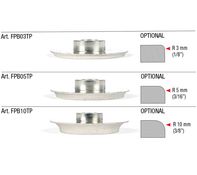 - Disponibles en trois rayons (3 mm FPB03TP, 5 mm FPB05TP et 10 FPB10TP mm)