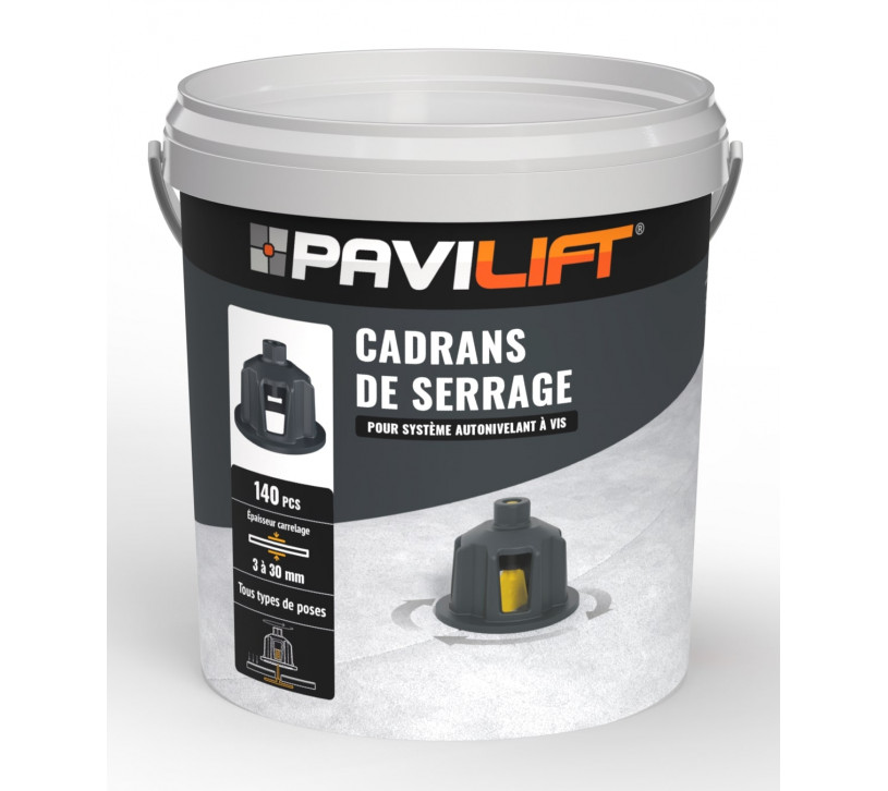 Indispensables pour activer le système autonivelant PAVILIFT, ces cadrans permettent un serrage précis sans endommager les carreaux. Leur réutilisabilité en fait une solution économique et respectueuse de l’environnement pour toutes vos poses de carrelage.