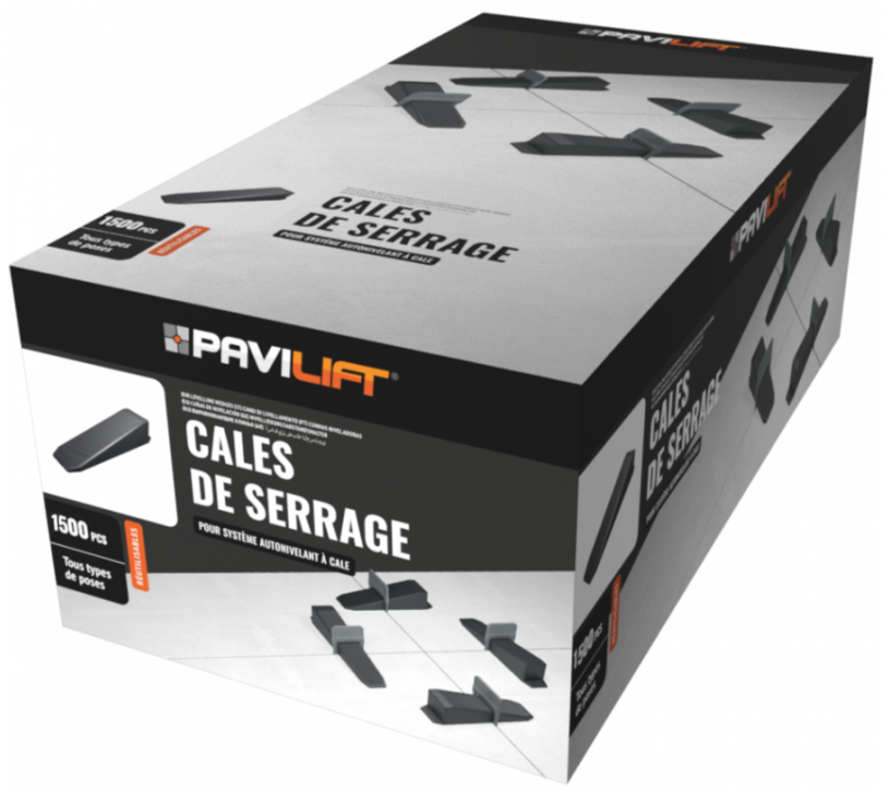 Les crans, plus nombreux et moins hauts, permettent un serrage à La main sur 80% du chantier. Pour des carreaux plus lourds et plus épais, La pince PAVILIFT" finira Le serrage.