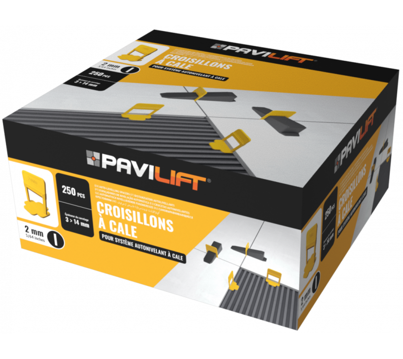 Les crans, plus nombreux et moins hauts, permettent un serrage à La main sur 80% du chantier. Pour des carreaux plus lourds et plus épais, La pince PAVILIFT" finira Le serrage.