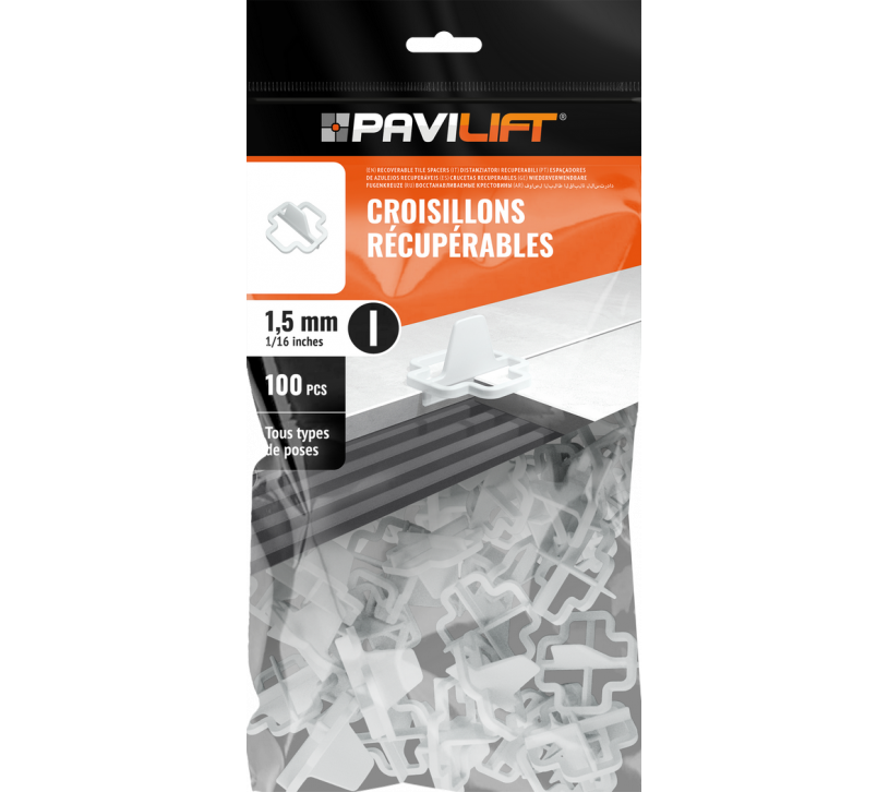 100 Croisillons récupérables "I" 1,5mm Pavilift