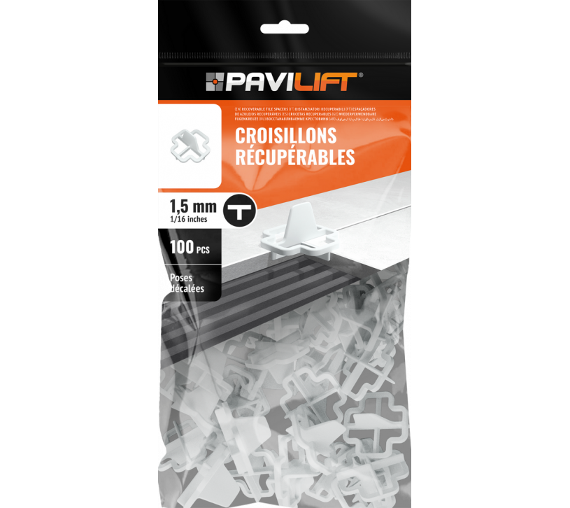 100 Croisillons récupérables "T" 1,5mm Pavilift