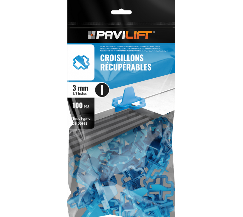 La gamme PAVILIFT® propose 18 produits pour répondre à tous les besoins de pose. Que vous souhaitiez poser en diagonale, à cabochon, en décalé, en chevron, en point de Hongrie ou en damier, les croisillons récupérables PAVILIFT® sont là pour vous accompagner.