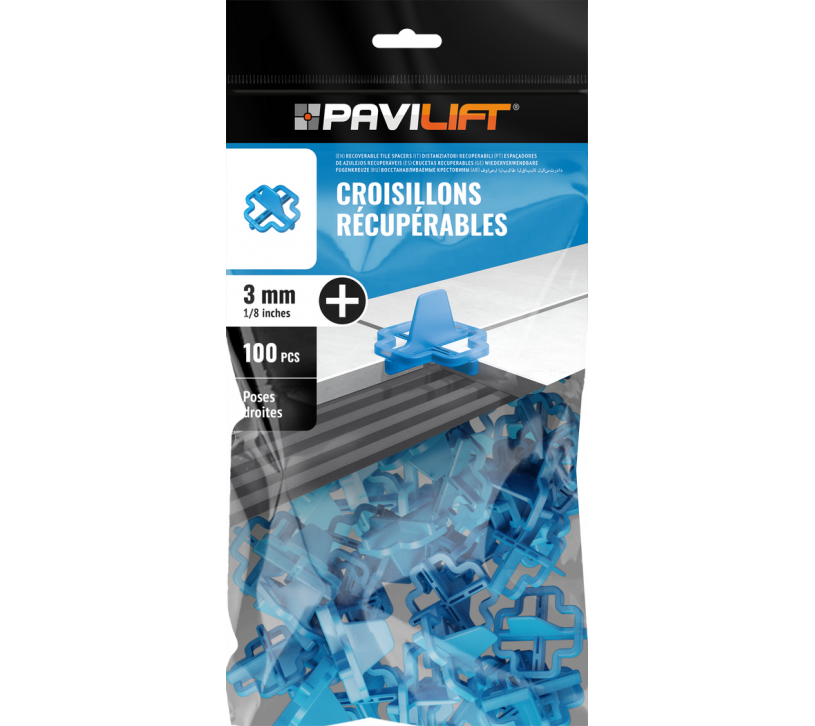 La gamme PAVILIFT® propose 18 produits pour répondre à tous les besoins de pose. Que vous souhaitiez poser en diagonale, à cabochon, en décalé, en chevron, en point de Hongrie ou en damier, les croisillons récupérables PAVILIFT® sont là pour vous accompagner.