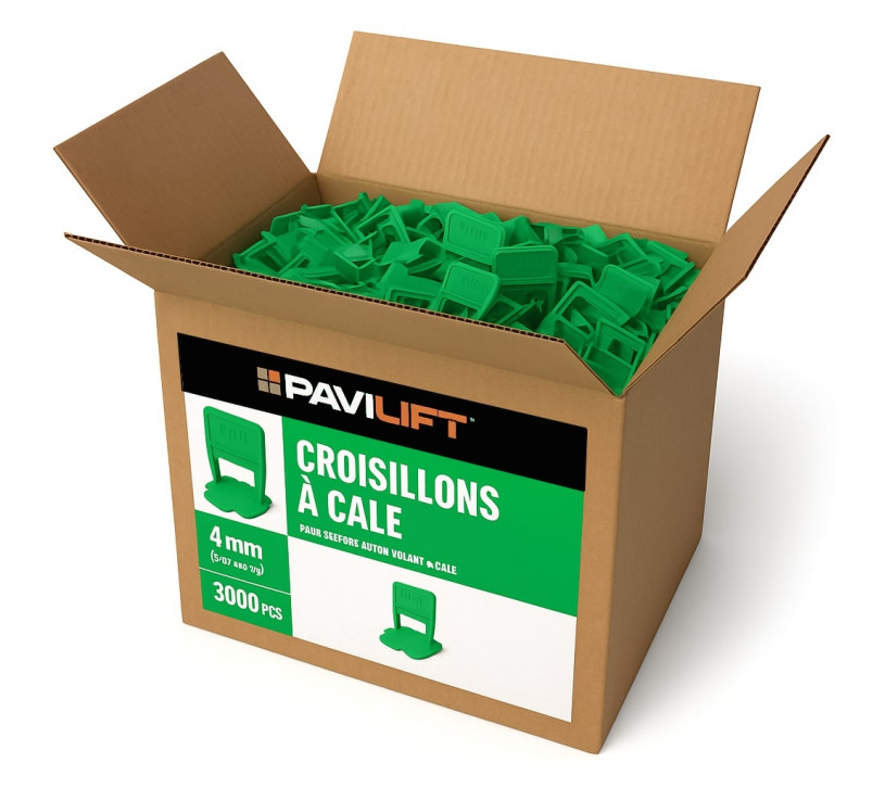 Les crans, plus nombreux et moins hauts, permettent un serrage à La main sur 80% du chantier. Pour des carreaux plus lourds et plus épais, La pince PAVILIFT" finira Le serrage.