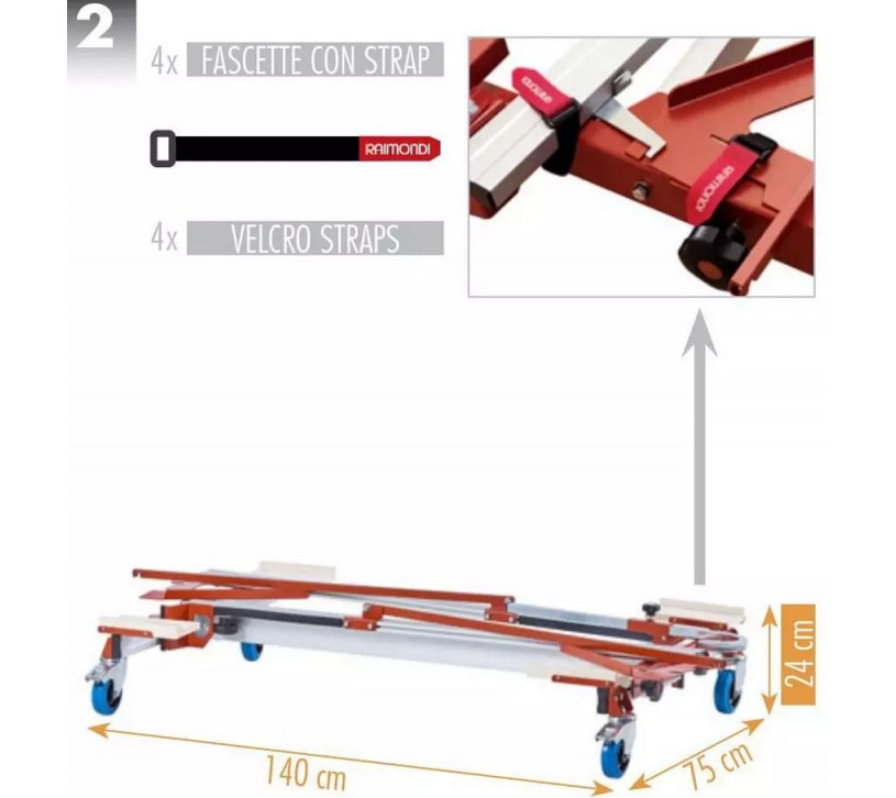 - 2 crochets ajustables en hauteur pour fixation du système EASY-MOVE RAIMONDI