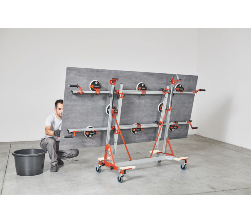 Le CAM MkIII est idéal pour les carreleurs professionnels travaillant sur des formats XXL. Il facilite le transport, le stockage et l'encollage en toute sécurité, avec ou sans le système Easy-Move.