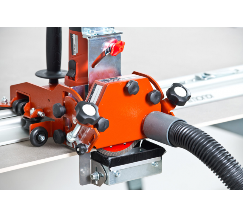 Le système de dépoussiérage se fixe au fond du système de coupe Raimondi POWER RAIZOR Cutting System. Il réduit considérablement la poussière lors de la coupe à sec en étant utilisé avec un aspirateur approprié.