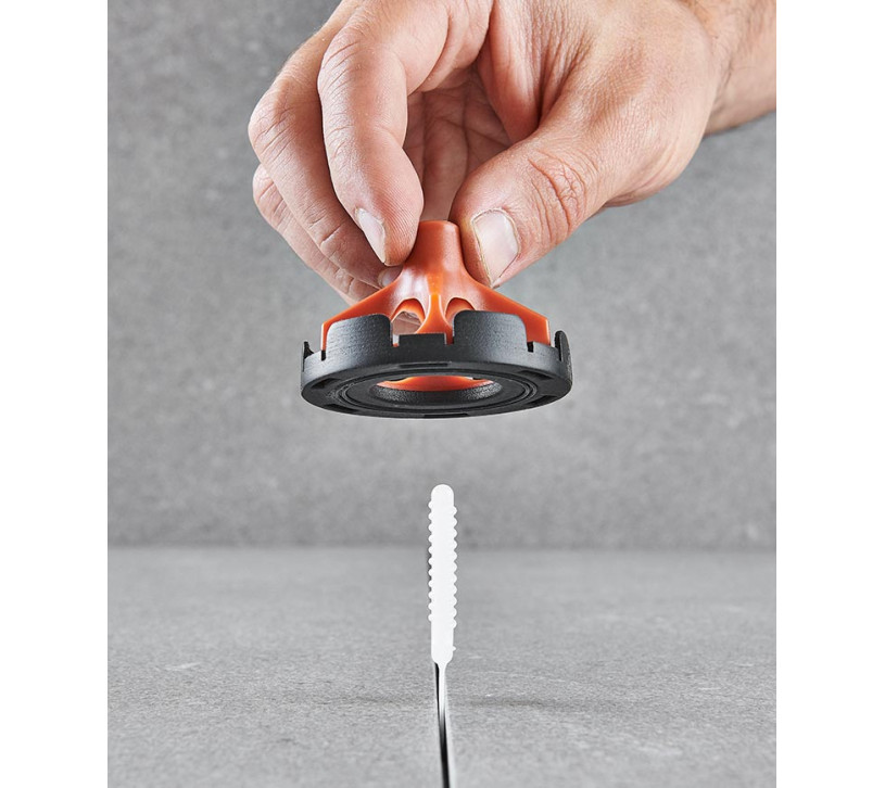 - L'écrou a de grandes ouvertures pour permettre la vue du joint, ce qui rend le système adapté à une utilisation sur les côtés des carreaux ainsi que sur les intersections.