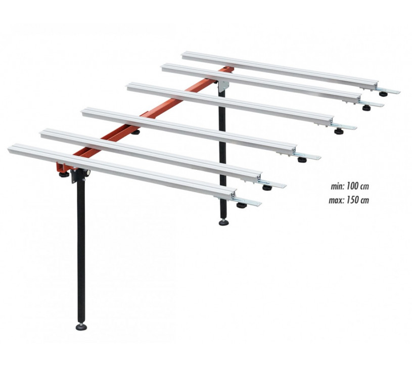 Cette extension télescopique permet également d'ajuster la largeur de la table, passant de 100 cm à 150 cm, afin de s'adapter parfaitement aux besoins des carreleurs professionnels travaillant sur des carreaux de très grandes dimensions. L'extension est simple à installer et offre une robustesse optimale pour des travaux exigeants.