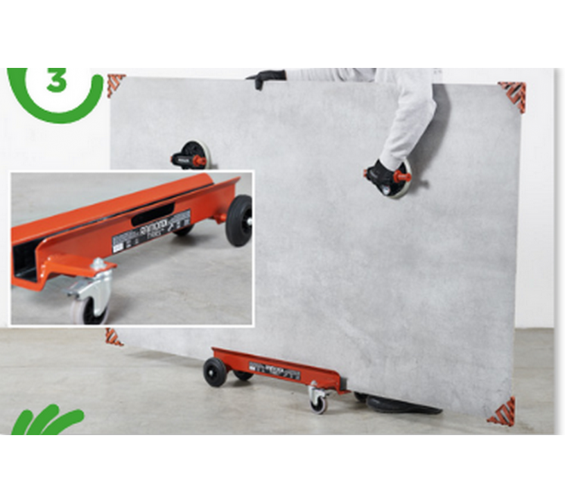 Idéal pour carreleurs et professionnels manipulant des carreaux XXL. Utilisable seul ou en complément des systèmes EASY-MOVE pour optimiser les flux logistiques sur chantier.