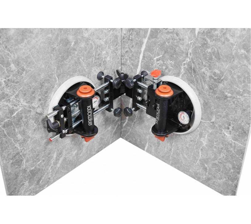 - Équipé de 2 ventouses RV175 (Ø 175mm) avec gomme en caoutchouc anti-tâches, idéales pour les carreaux lisses ou structurés.