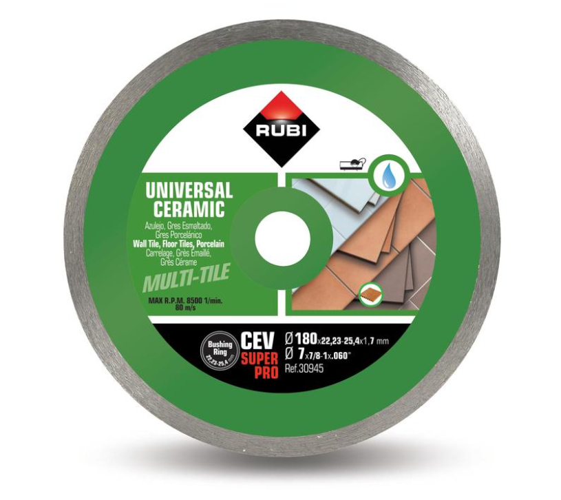 Le disque diamant CEV SUPERPRO RUBI est un disque de jante continue conçu pour offrir une coupe de haute qualité sur tout type de carreau céramique, grès, porcelaine et autres matériaux pierreux de revêtement.