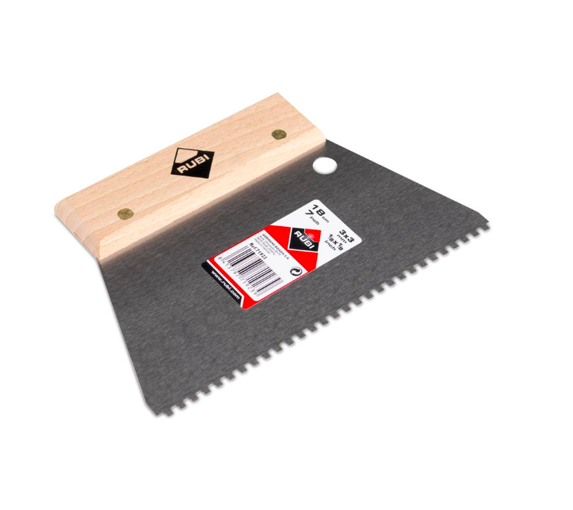 Les spatules avec manche en bois de RUBI possèdent une lame de 18 cm de large, fabriquée en acier spécial hautement résistant à l'usure