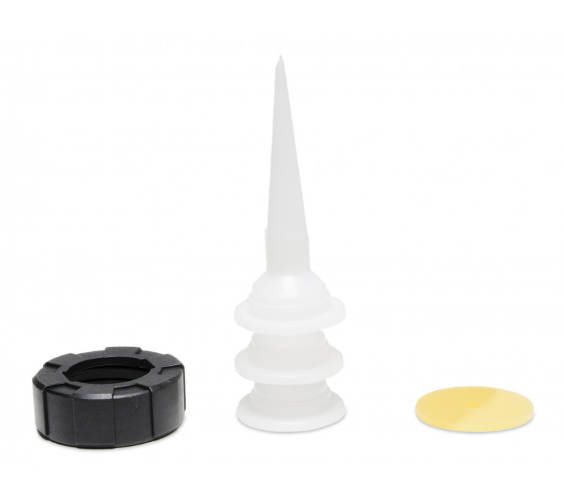 Il inclut un bouchon à vis de rechange, un piston de PU flexible pour l'application de mortier pour joints à base cimenteuse et 3 buses remplaçables et ajustables à la largeur de joint (de 2 mm à 14 mm de diamètre).