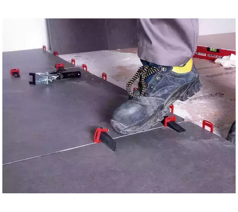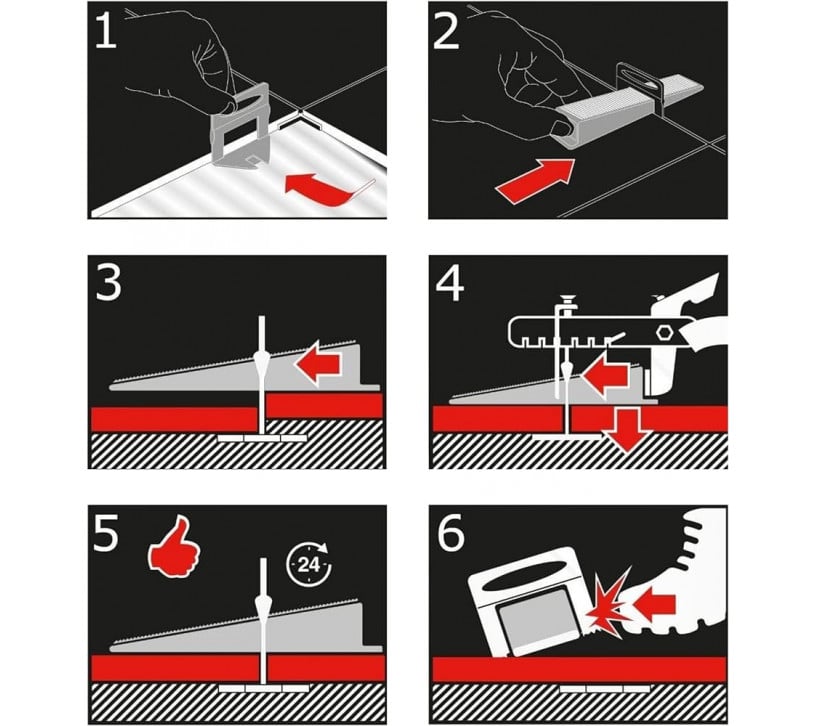 Le principe est simple : une cale vient presser le carreau le plus haut jusqu'à ce qu’il s’aligne parfaitement avec les carreaux adjacents. Cela améliore considérablement la régularité de la pose.