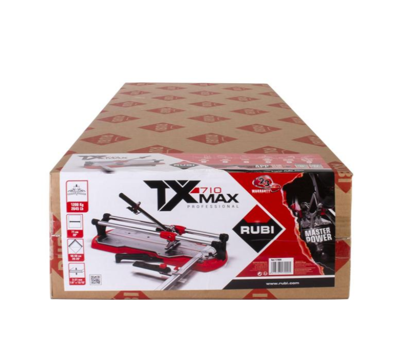 Tous les modèles de la gamme TX-MAX comprennent une butée latérale pour la mesure et le blocage des coupes et des bandes étroites répétitives, ainsi que deux molettes (8 mm et 22 mm EXTREME) et la valise de transport traditionnelle. Les coupes-carreaux manuels TX-MAX sont compatibles avec toute la gamme de molettes RUBI PLUS. Le modèle TX-1250 MAX comprend, en plus de la valise, une poignée et des roulettes pour faciliter sa portabilité sur le lieu de travail.