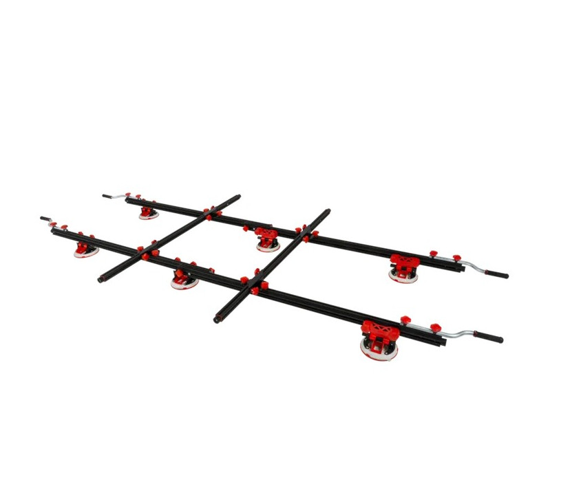 - 6 ventouses à pompe avec base en caoutchouc gris, repositionnables selon le format des dalles