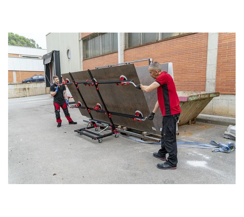 Le SLAB TRANS HEAVY DUTY N de RUBI est un système de transport hautement robuste, conçu pour faciliter la manutention des dalles céramiques et grès cérame de grand format jusqu'à 360 cm de long, 160 cm de large et jusqu’à 170 kg.