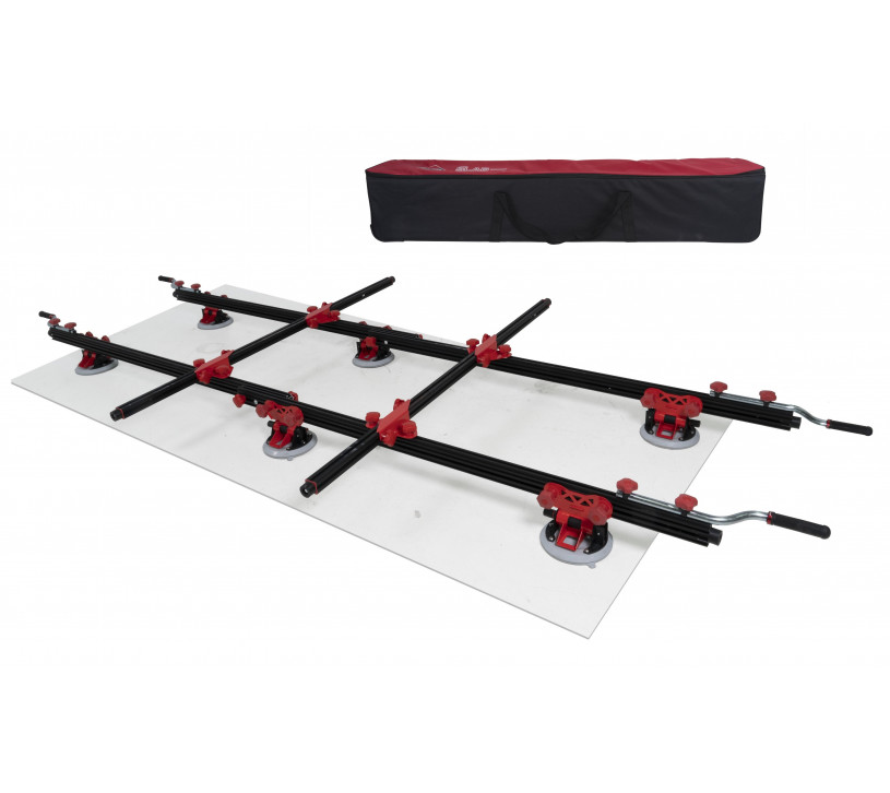 Le SLAB TRANS HEAVY DUTY N a été spécifiquement conçu pour le transport sécurisé de dalles à partir de 6 mm d’épaisseur. Sa structure aluminium lui permet de supporter un poids maximal de 170 kg (attention : cette charge ne doit jamais être dépassée).
