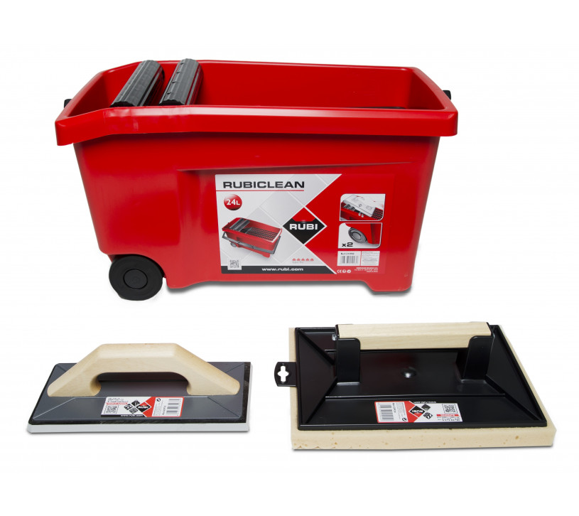 Les kits RUBICLEAN SUPERPRO sont conçus pour doter le professionnel des éléments de base nécessaires à la réalisation de l'application et du nettoyage après la pose du produit de scellement.