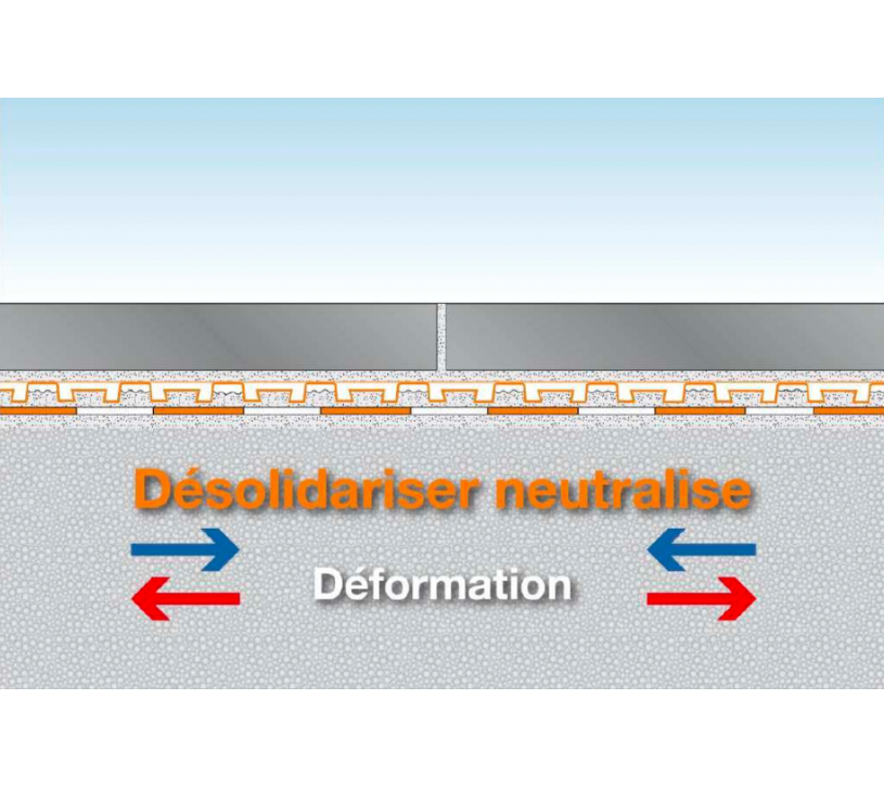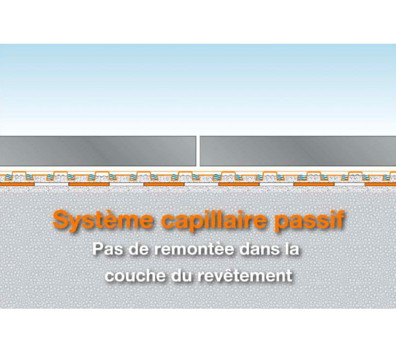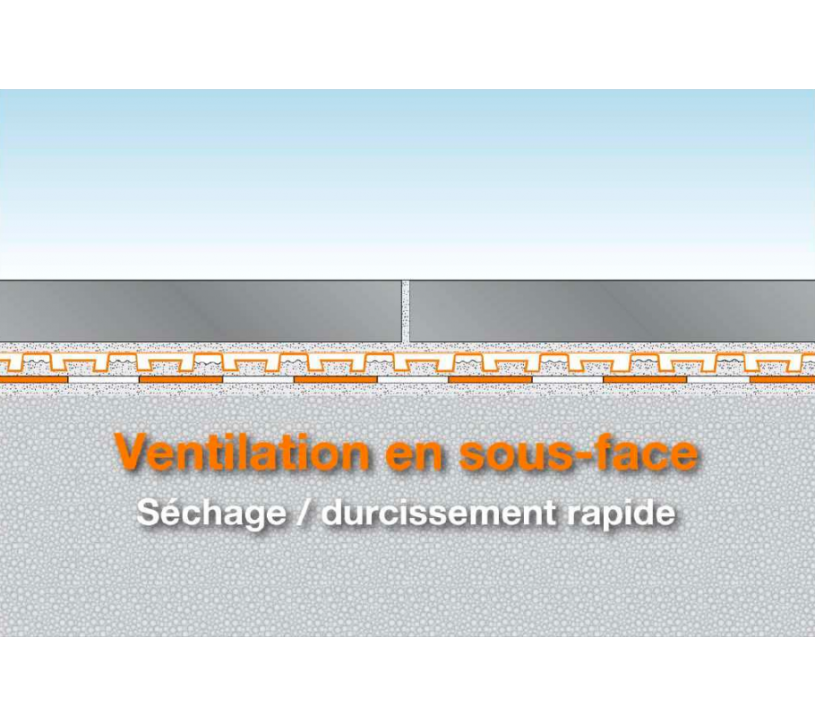 La ventilation en sous-face permet un séchage rapide du mortier-colle. L’effet capillaire passif garantit une évacuation de l’eau sans pression et évite les remontées dans le revêtement.