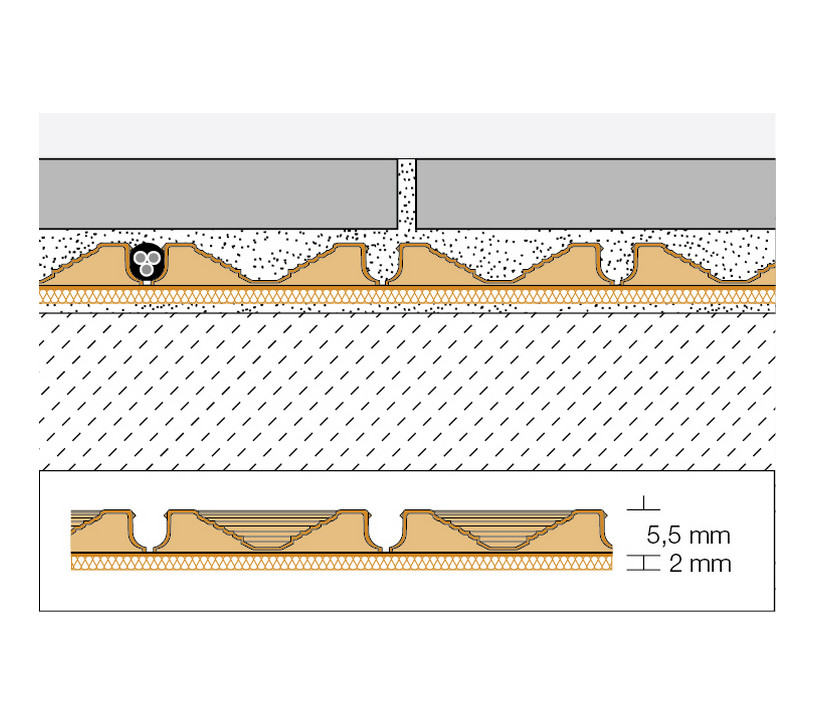 Conseil pro : au-dessus de locaux non chauffés, ajoutez une sous-couche isolante (ex. Schlüter-KERDI-BOARD 5 mm) pour optimiser la réactivité et limiter les pertes.
