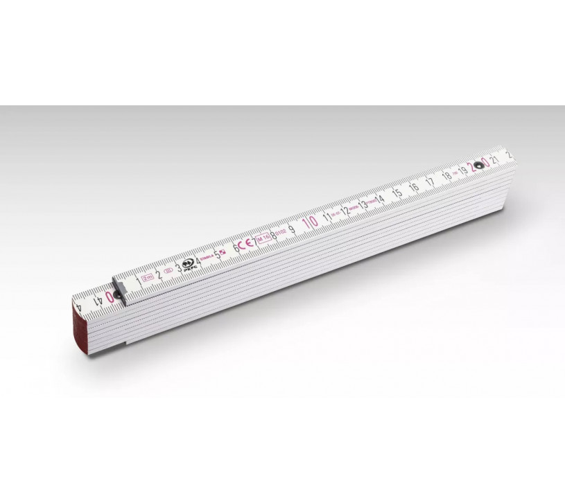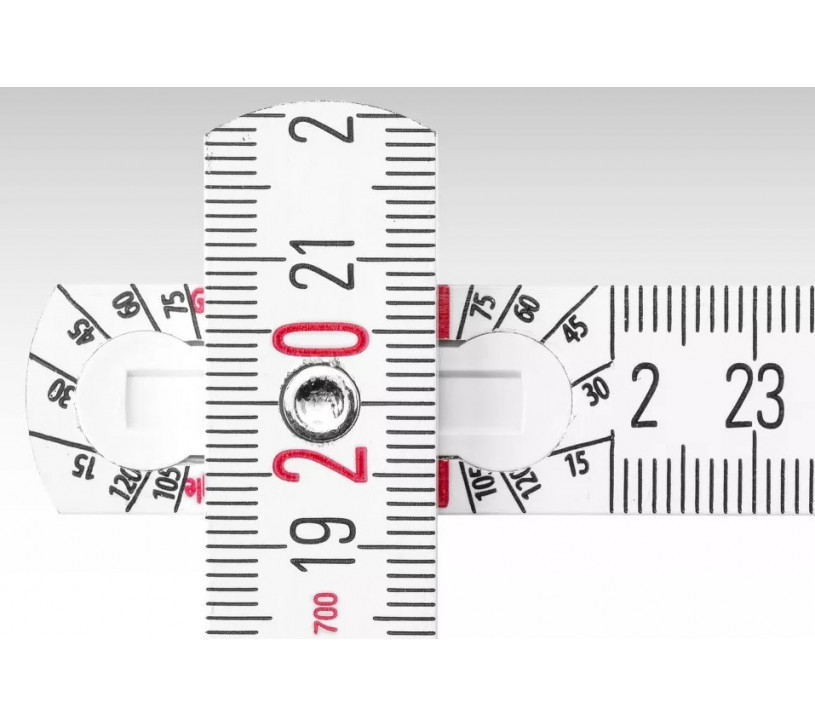 - Graduation bilatérale en cm/mm sur les deux bords du mètre pliant.