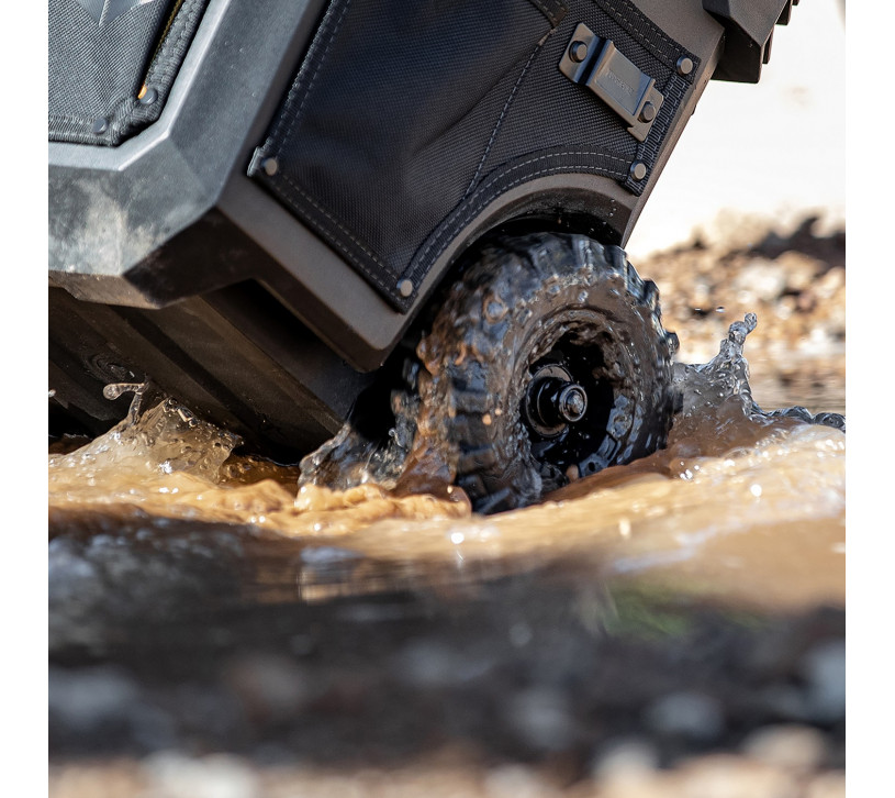 - Roues tout-terrain robustes pour une utilisation sur les chantiers.